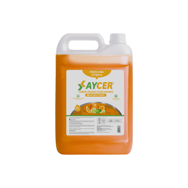 JABÓN LIQUIDO ANTIBACTERIAL AYCER para manos es un producto cosmético, no tóxico y práctico de usar. Limpia eficazmente, hidrata y protege la piel, dejando una agradable sensación de frescura. Su fórmula está enriquecida con glicerina y aloe vera, que ayudan a mantener las manos suaves y cuidadas.