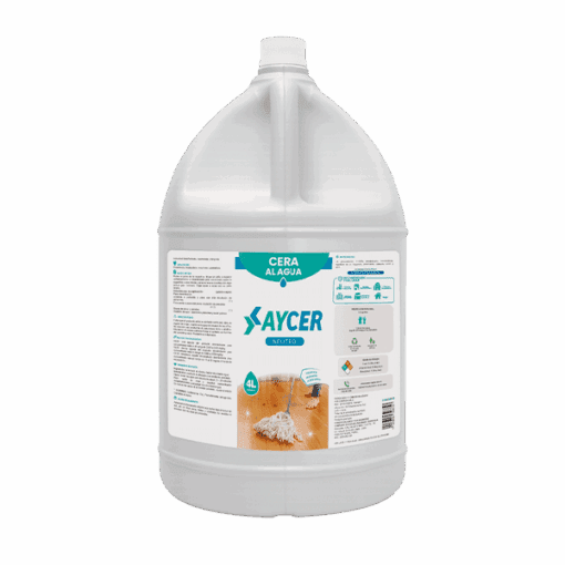 CERA AL AGUA AYCER Limpia, desinfecta y realza el brillo en pisos de loseta, vinílicos, cerámicos, cemento pulido, terrazo y mármol. No usar en madera ni parquet.