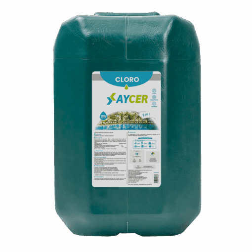 CLORO AYCER es un desinfectante formulado con hipoclorito de sodio al 7.5%, recomendado para la limpieza, tratamiento, purificación y desinfección del agua en piscinas, ya que ayuda a eliminar de manera efectiva bacterias y hongos.