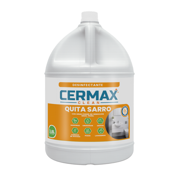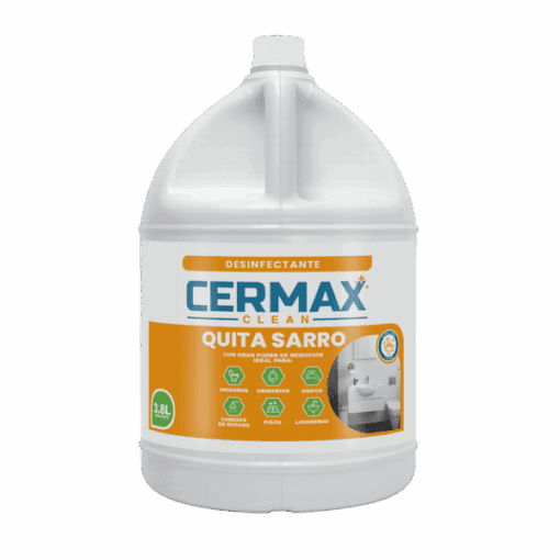 QUITA SARRO CERMAX está especialmente formulado para eliminar sarro, incrustaciones calcáreas, caliche y manchas difíciles en inodoros, lavaderos, tuberías y pisos.