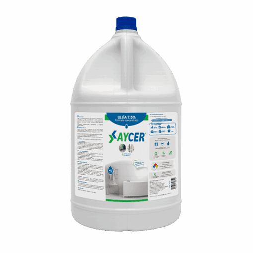 LEJÍA 7.5% AYCER Biodegradable, formulada con hipoclorito al 7.5%. Gracias a su elevada concentración y óptima estabilidad, ofrece una desinfección más eficiente y confiable en todo tipo de superficies.