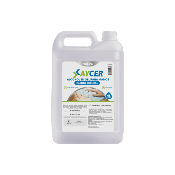 El ALCOHOL EN GEL AYCER es un gel transparente con el aroma característico del alcohol. Limpia y desinfecta las manos, dejándolas suaves e hidratadas gracias a su fórmula enriquecida con aloe vera y glicerina. No necesita enjuague.