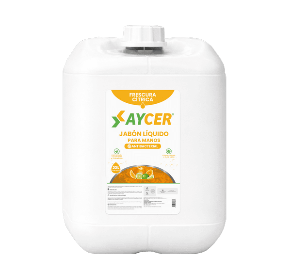 JABÓN LIQUIDO ANTIBACTERIAL AYCER para manos es un producto cosmético, no tóxico y práctico de usar. Limpia eficazmente, hidrata y protege la piel, dejando una agradable sensación de frescura. Su fórmula está enriquecida con glicerina y aloe vera, que ayudan a mantener las manos suaves y cuidadas.
