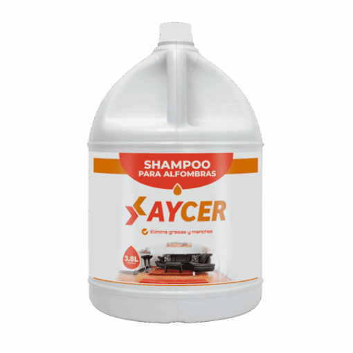 SHAMPOO PARA ALFOMBRA AYCER formulado especialmente para limpiar, desinfectar, aromatizar y lavar alfombras, tapices y superficies textiles similares, proporcionando una limpieza profunda y dejando un agradable aroma.