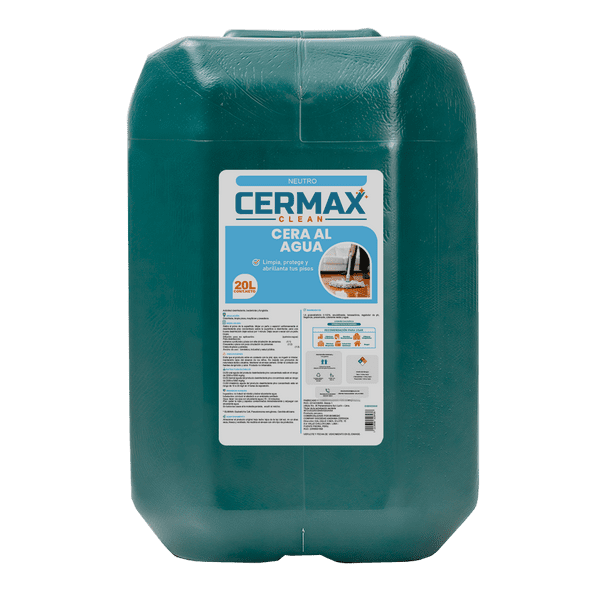 CERA AL AGUA CERMAX Limpia, desinfecta y realza el brillo en pisos de loseta, vinílicos, cerámicos, cemento pulido, terrazo y mármol. No usar en madera ni parquet.