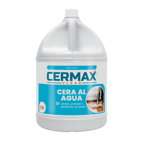 CERA AL AGUA CERMAX Limpia, desinfecta y realza el brillo en pisos de loseta, vinílicos, cerámicos, cemento pulido, terrazo y mármol. No usar en madera ni parquet.
