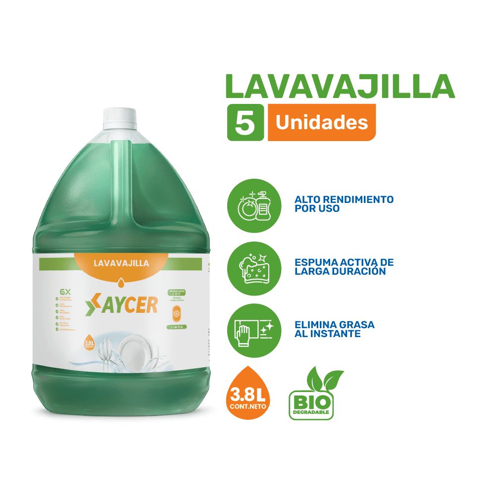 • 5 UND DE LAVAVAJILLA AYCER LIMÓN 3.8 L